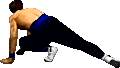 Golpe de Sombra: Levanta la pierna, ejecuta una especie de traslación dejando un rastro de sombras grises rojízas y se detiene con una patada en el torso.