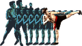 Golpe de Patada de Sombra: Levanta la pierna, ejecuta una especie de traslación dejando un rastro de sombras verdes fosforecentes y se detiene con una patada en el torso.