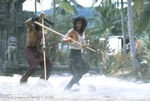 Llegando a una isla extraña, Liu, Johnny y Sonya descienden del barco desorientados y sin poder comunicarse con otras personas.