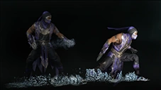 - Dos de estos se encuentran en la Krypta; al cruzar el puente sobre el foso, se le puede ver luchando contra Blaze, al igual que en MKX . Su otro cameo ocurre cerca del foso, apareciendo como uno de los otros ninjas aleatorios que caen hacia su muerte.