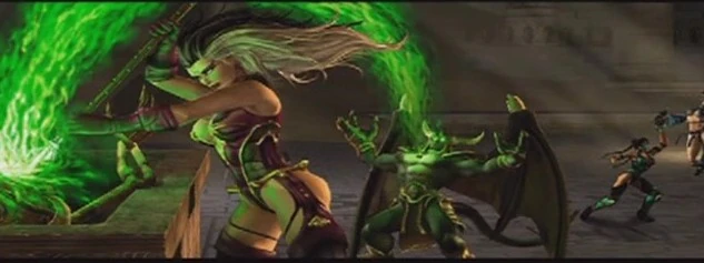 vagarosamente.Quan Chi estava conversando com Shao Kahn,Onaga e Shang Tsung.Quan Chi diz que por certo motivo eles deveriam se unir mesmo estando de lados diferentes a fim de unir forças contra o bem.Shang Tsung o questiona sobre o porque