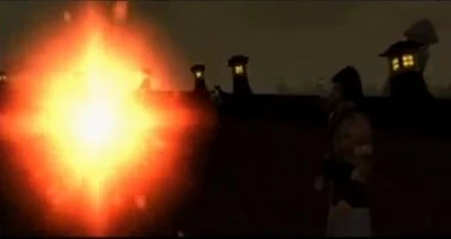 Uma sombra cruza o caminho de Shujinko e o mesmo se espanta. A