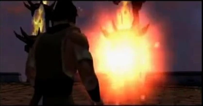 Shinnok informou Onaga sobre Blaze e o poder divino que seria dado em cima de quem o derrotasse em