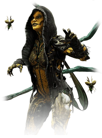 D'Vorah is a character introduced in Mortal Kombat X. As a female member of the Kytinn species, she lives in Outworld and formerly served as Kotal Kahn's first minister.