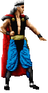 First appearing as an unnamed boss in the adventure title Mortal Kombat Mythologies: Sub-Zero, the Wind God Fujin made his debut as a playable character Mortal Kombat 4. Along with Raiden, Fujin is another character in the series to have originated from Japanese religion, based on the Shinto god of the wind of the same name. He appears as a tall, ageless, muscular human with long white hair bound in a ponytail and glowing white eyes. The back of his Mortal Kombat 4 costume features the Chinese character 空, whose most relevant translation to English is air or sky. As expected, he has a great variety of wind-oriented attacks at his disposal.